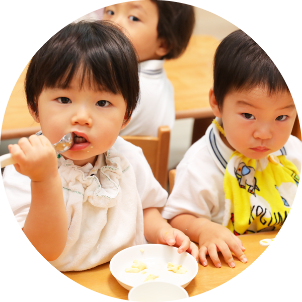 「今日のご飯はなぁ~に?」と毎日聞こえてくる子どもたちの声。お友だちとの関わりを大切にしながら、食を通して健やかな子どもたちの成長発達を促していきます。 -