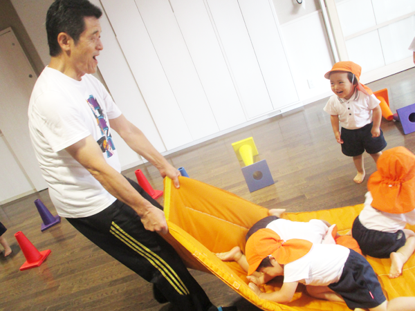 運動遊び 月1回(1〜5歳)もりもり運動あそび乳幼児期は、生涯にわたる“生きるチカラ”の基礎が養われる最も重要な時期です。心身の発育発達を促すための“五感をフルに使った運動”を体験することがとても大切になります。そのため何よりもまず『身体を動かすことを好きになってほしい』という願いのもと、楽しみながら全身の様々な神経に刺激を与える“運動あそび”を実施しています。バランスのとれた身のこなしを修得しながら良い身体づくりをすることで、大きなケガを防げるようになります。また、達成感や自信が仲間づくりに強いチカラを発揮します。運動あそびアドバイザー